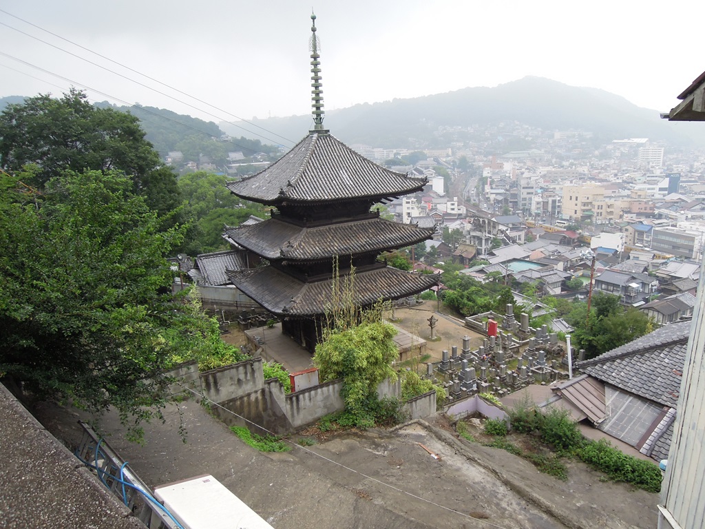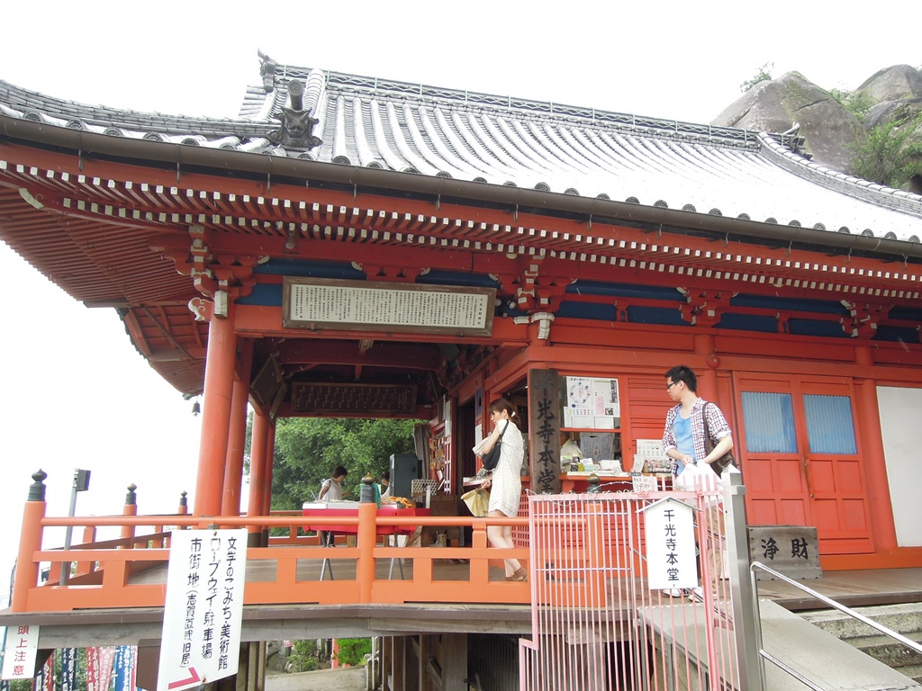 ロープウェイで千光寺公園まで行き、そこから歩いて下山しましたが、その途中、千光寺があります。崖っぷちみたいなところにあって、初めての人は「こんな場所に?」と思うかもしれません。雨の中足元が悪く大変でしたが、それもいい思い出になりました。余談ですが、下山の途中茶店があったのでかき氷を食べました。ちょっと古めかしいお店ですが、レトロでよかったです。