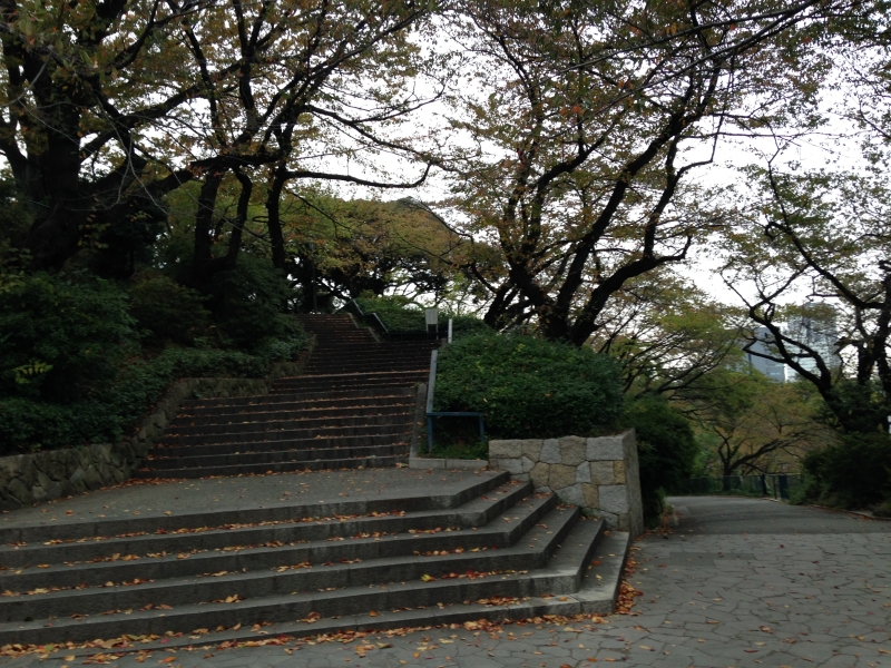 公園はこの丘陵の斜面を利用した形になっており、下部は児童公園、上部は日本庭園と広場になっています。
