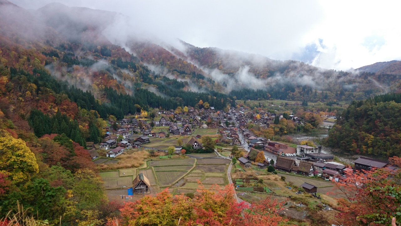 ここから見れば、合掌造りの集落をまさに山間の集落という雰囲気で楽しめます。