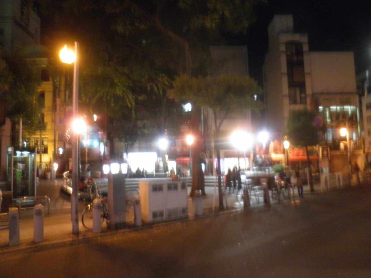 アメリカ村にあるホテルに泊まったので、アメリカ村の三角公園には何度か訪れました。 スケートボードをやっている若者が目立つ公園です。 近くのお店でたこ焼きなどをテイクアウトして、ここで食べている人をよく見かけます。 交番があるので、あんまりあやしい感じはしませんでした。