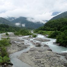 松川に架る北アルプスが見える有名な橋