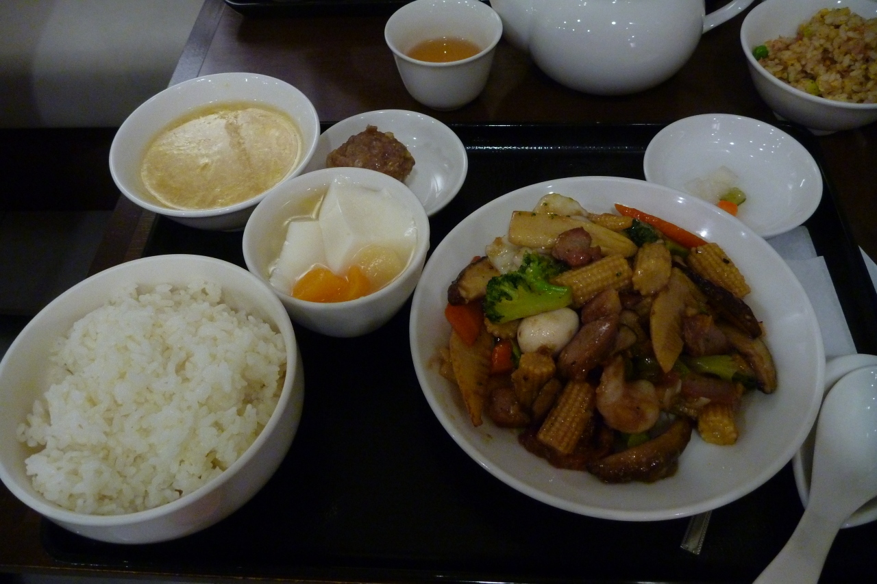 この日はAセット(八宝菜+ご飯・スープ・小菜+御新香・デザート)998円と