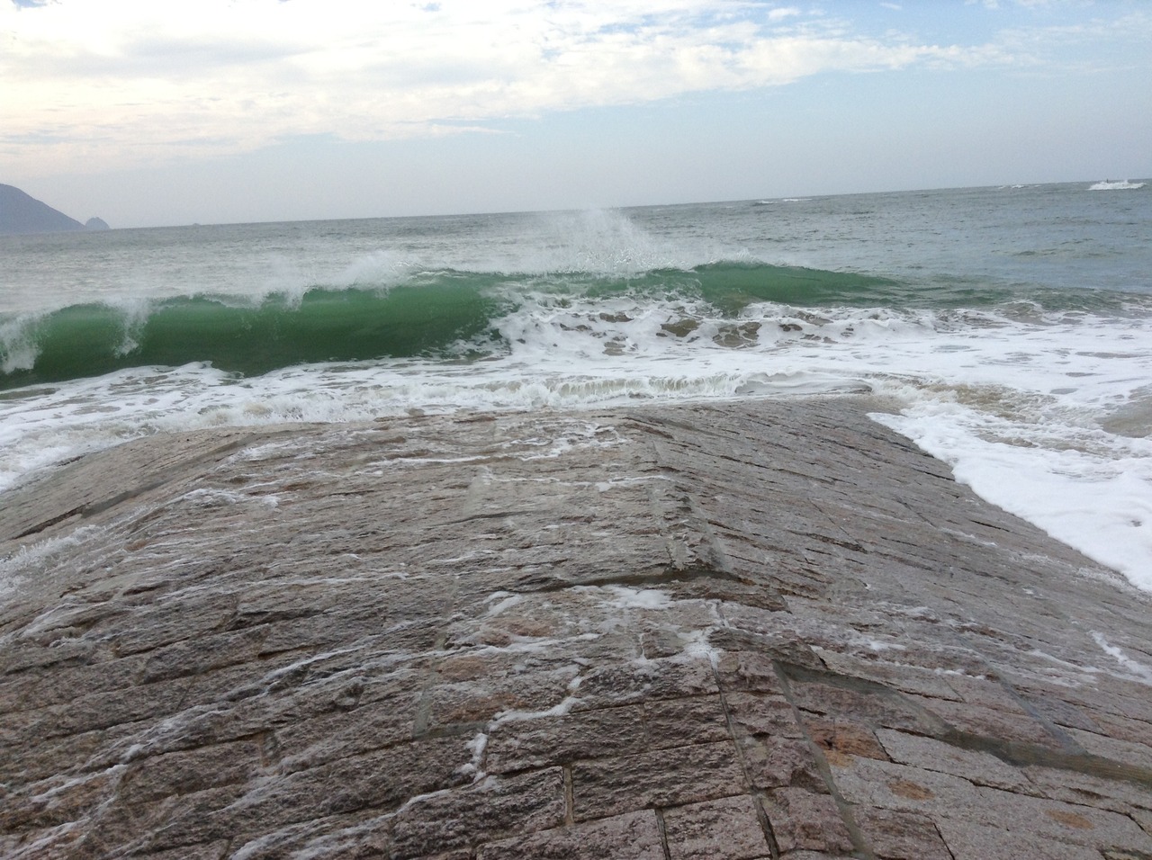 台風が近づいており、海水浴はできませんでしたが、波があって、波打ち際で、波との追いかけっこをして子供は遊んでいました。