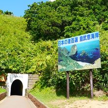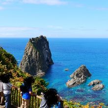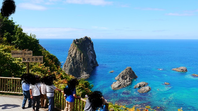 積丹半島の眺望スポットの一つだが、海の色はここが一番きれいで文字通り積丹ブルーだった。駐車場から狭く小さなトンネルを抜けると絶景の展望台にたどり着く。展望台から階段を下りると海岸にたどり着くことができ、より間近にきれいな海を楽しめる。