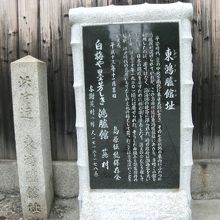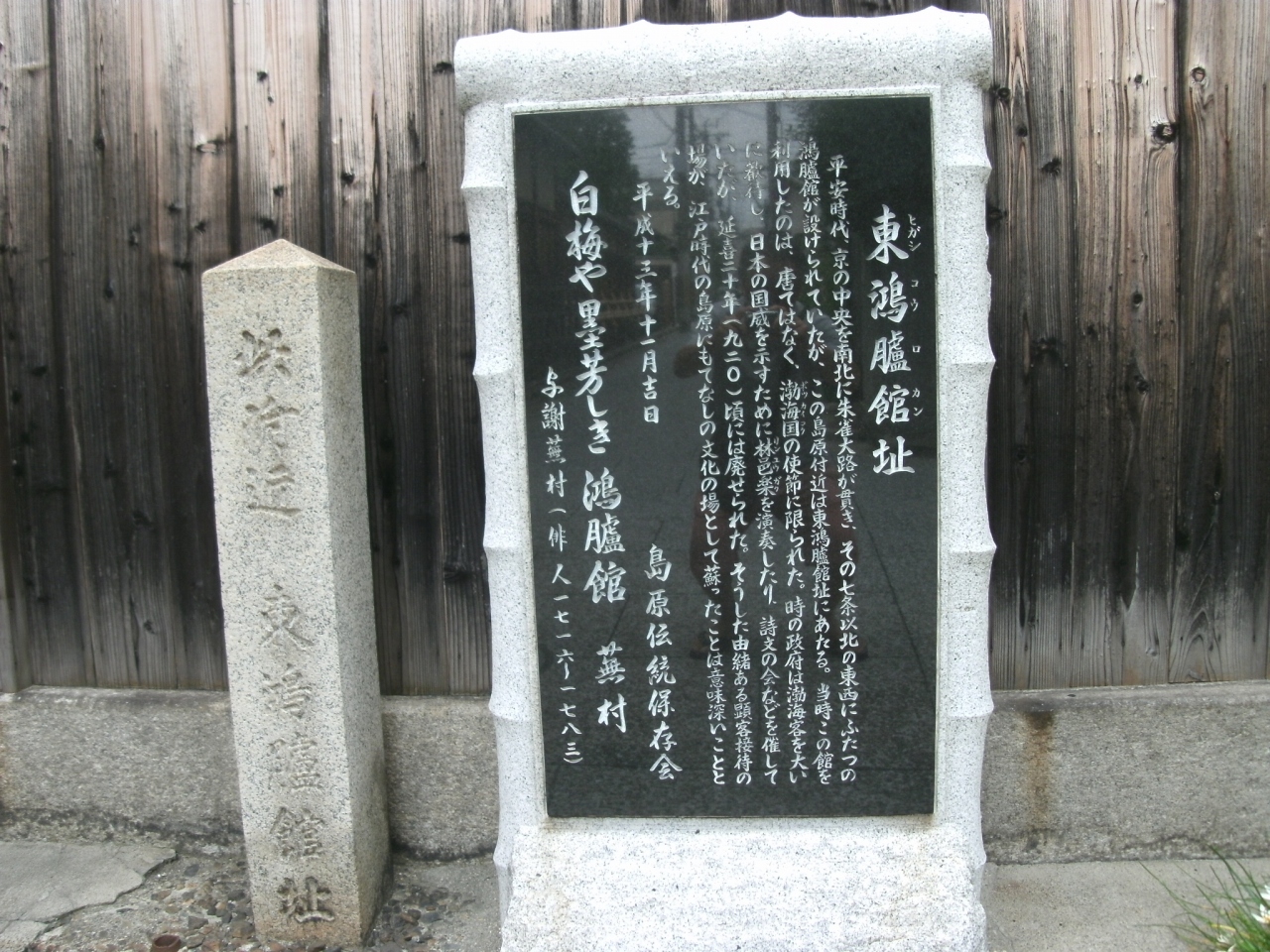 JRの丹波口駅から歩いて5分ほど、角屋の近くの塀の前に「東鴻臚館跡」の石碑が立っています。