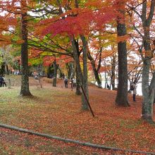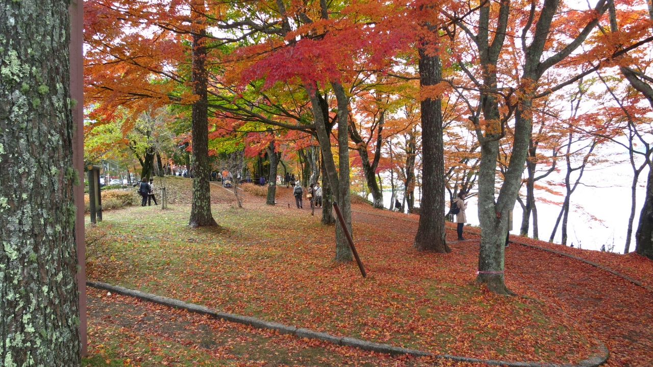 山中湖畔の朝日丘湖畔緑地公園内にある、日本の渚100選にも選ばれている富士山と夕焼けのビューポイントです。山中湖のホテルに泊まりに行った際、せっかく紅葉の時期に旅するので、紅葉を楽しめるスポットにも行きたいと思い、朝日丘湖畔緑地公園で開催中の「山中湖夕焼けの渚紅葉まつり」に行きました。あいにくの曇り空で、この日は富士山はきれいに見えませんでしたが、山中湖を目の前に、約600mの美しい紅葉回廊を散歩しました。場所によって、もみじの色が深紅だったり、山吹色だったり、群生するカエデがあったり、落ち葉の美しい絨毯が見られたり、沢山の見所があって、紅葉狩りが充分に楽しめました。子ども連れだったので、寒くなる前に後にしましたが、16:30からはライトアップもやっているようです(21時まで)。晴れていたら夕暮れにライトアップされたもみじと、夕焼けの富士山の両方が楽しめる絶景スポットだと思います。またこの時期(10月中旬から2月下旬)、ダイヤモンド富士も見られるようです。