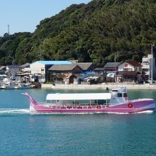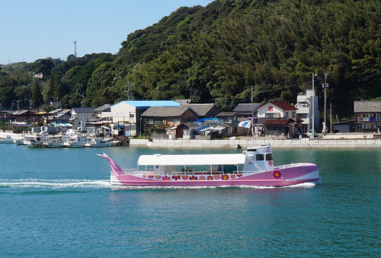 クジラの形をしたピンクの船体が可愛いジーラ、船内からは、海中散歩の気分を体験できます。