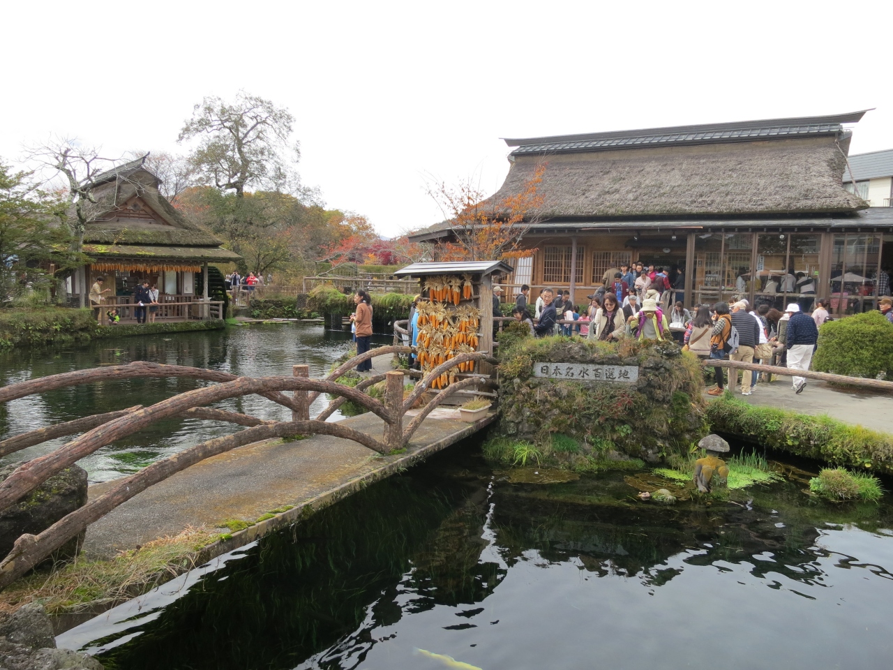 富士山に降り積もった雪や雨が、長い歳月をかけて伏流水として湧き出した8つの池の総称です。忍野八海は、全国名水百選にも選ばれ、国の天然記念物にも指定されているそうです。11月の3連休のお昼頃に行きましたが、観光バスも来ていて、沢山の人でにぎわっていました。村営橋向駐車場(お釜池近く)は無料で止められるとのことでしたが、小さな子ども連れだったので、湧池近くの「向の家駐車場」¥300(1回)に駐車しました。近くには、¥500以上のお買い物で駐車料金無料の場所などもありました。忍野八海の湧き水は澄み切っていて、大変美しい透明ブルーでした。周辺は茅葺き屋根の建物もあり、美しい農村風景が広がっていましたが、土産物店の中を通らないと中池には行けないなど、少々商業的な感じも受けました。