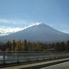 河口湖の向こうにそびえる雄大な富士山がよく見え、大変美しかったです。富士山のビュースポットの1つだと思います。