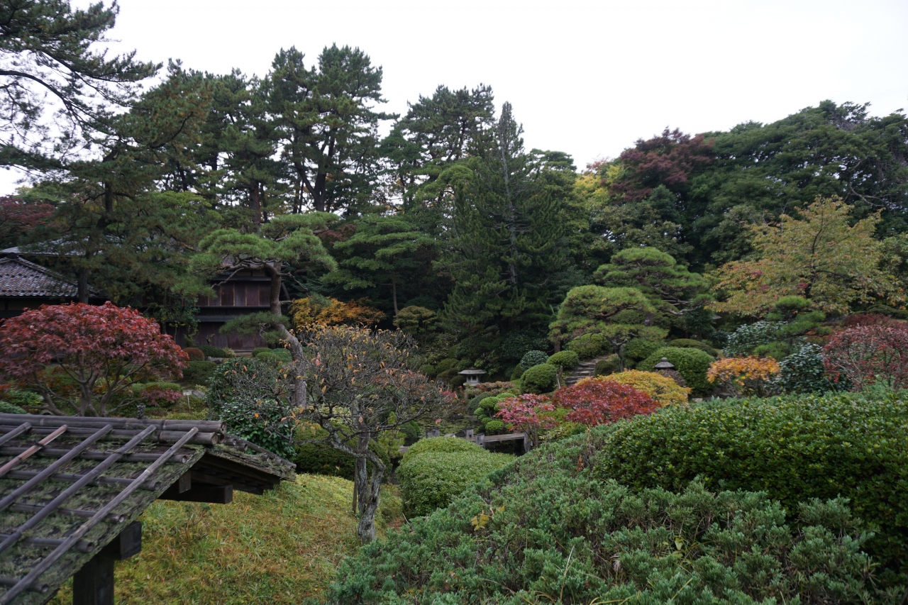 本間美術館には鶴舞園という見事な日本庭園があります。