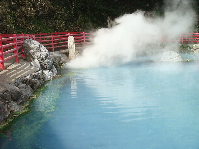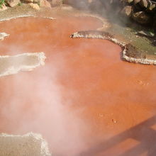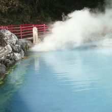 こちらはまさに地獄のデパートといった雰囲気。赤茶色の湯色の地獄や、コバルトブルーの美しい地獄。その日によって緑や青色に変化する謎の地獄。山地獄のように岩と岩の間から激しく湯けむりをあげる地獄など、いろんな地獄が集まっています。