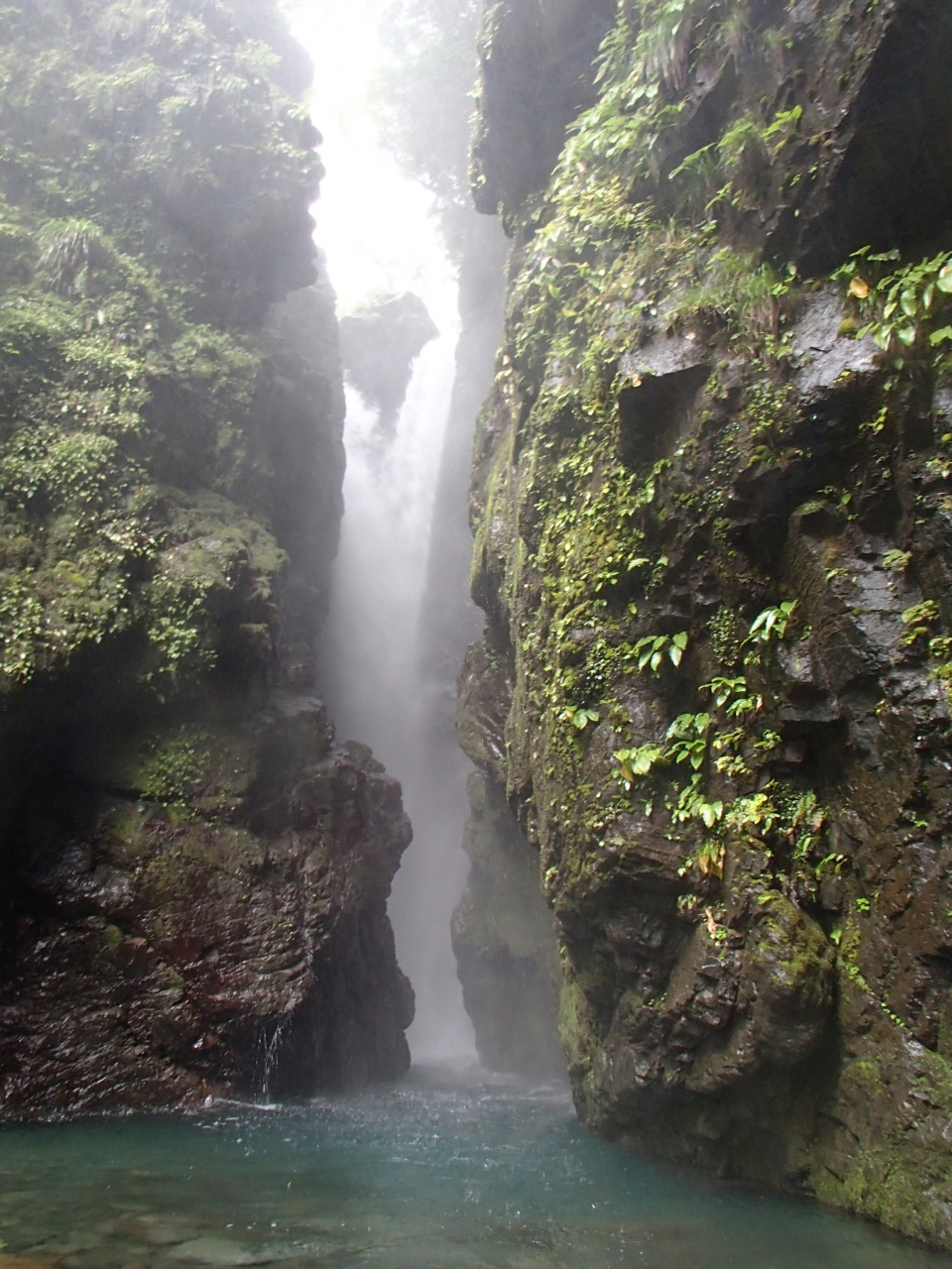 滝に向かって右側に回り込んでようやくその姿を現します。水量の多い時には、その位置に行くには靴を脱いで滝壷に入らなければなりません。