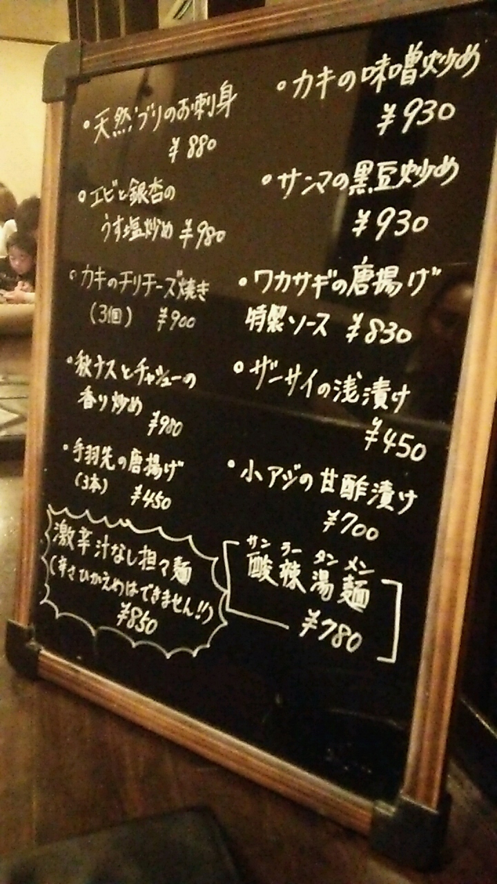 ボードにおすすめメニューがたくさん書かれていて、おいしそうな品ばかりで迷いました。