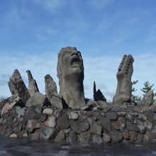 錦江湾の眺望がよい海沿いにある展望スポット。ここには溶岩を使って製作されたモニュメントがある。天に向かって叫んでいる様に迫力を感じ、溶岩は桜島の荒々しさを感じることができた。モニュメント以外にも錦江湾や桜島の山の景色もきれいに見ることができた。