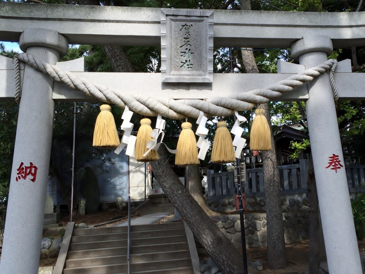 江ノ島の鵠沼駅の改札を出ると周囲の住宅街の中に一段小高く木々が立つ一角があり、そこに神社がありました。 賀来は「かく」と読むそうです。