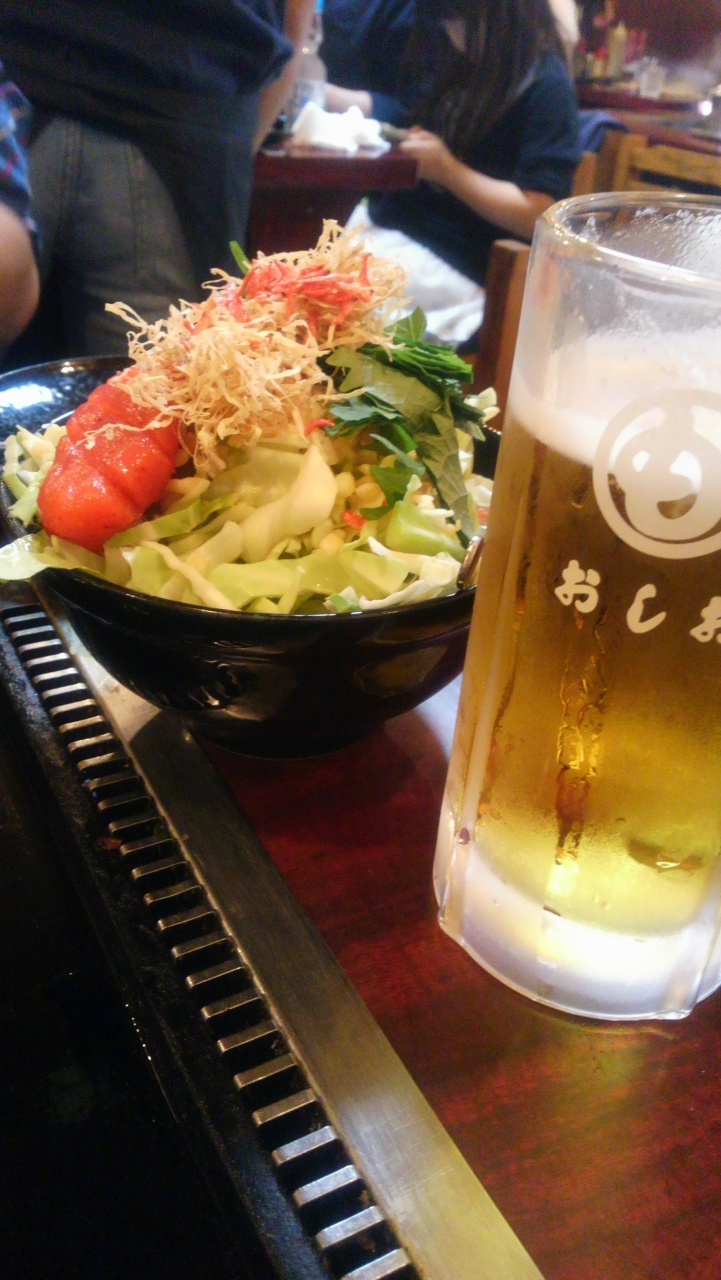 美味しい冷酒を飲みながら美味しいもんじゃ焼きを作り食べました。