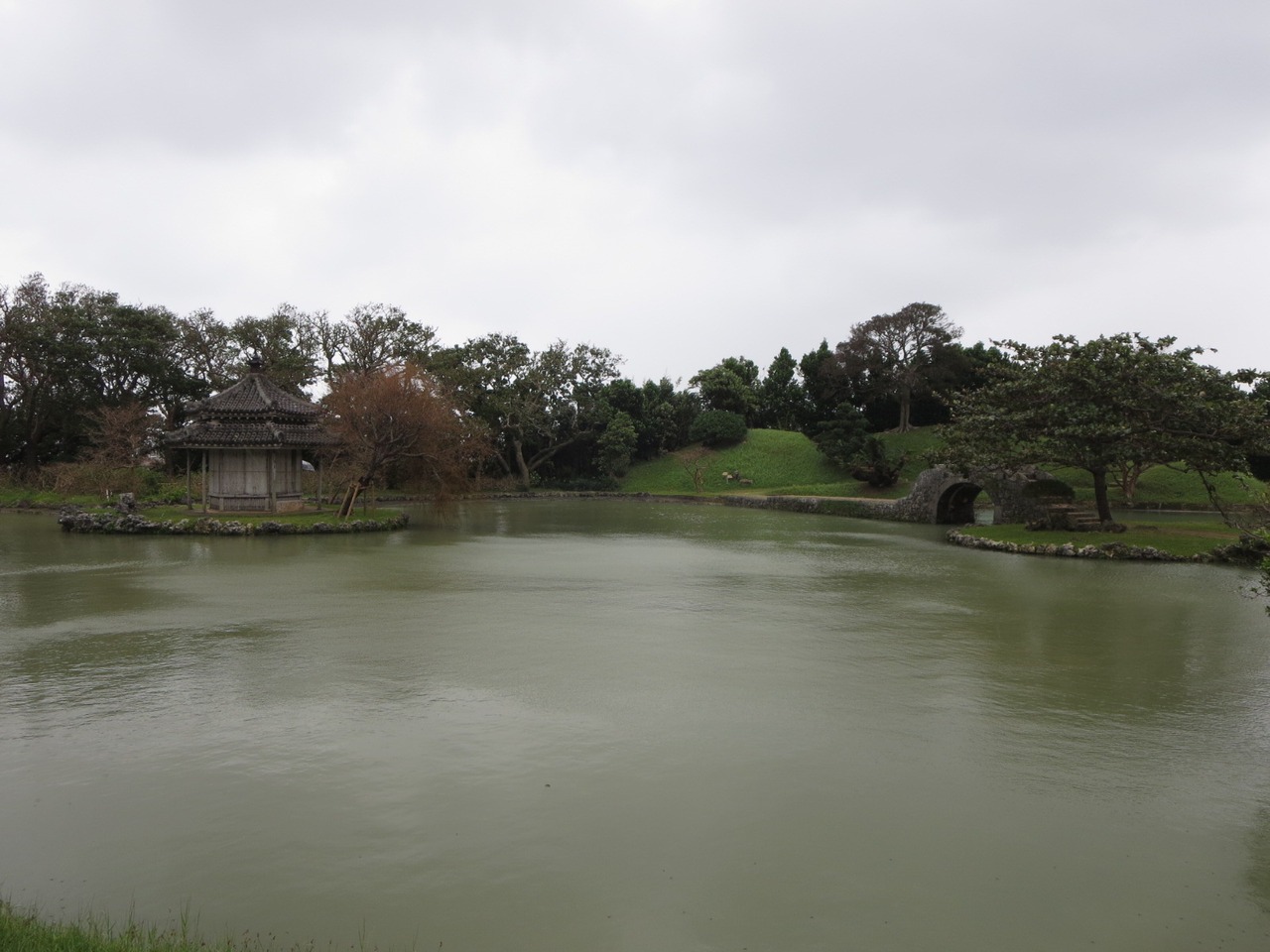 那覇空港から定期的にバスが出ていて楽に行けるところ。園に入ってみると、沖縄特有の木々が道の両脇に並んでいて、神秘的な空気のこの道を歩いて行くと、池がみえてくる。行った日が台風の後で曇っていたので明るさはなかったが、池が広く緑に囲まれ風情のある心がすーっと軽くなる場所。