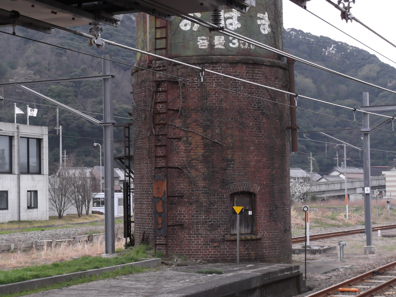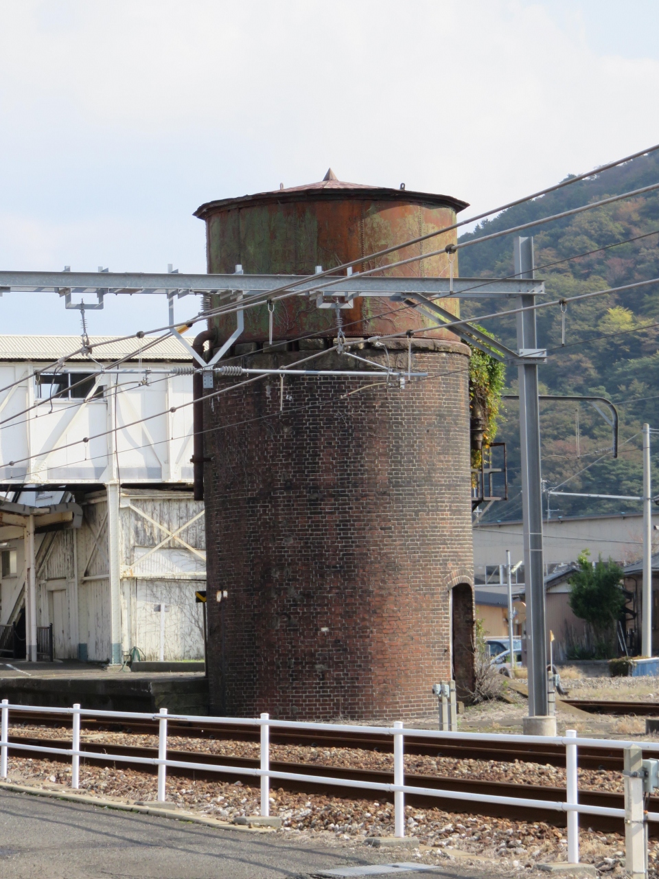 JR小浜線の小浜駅の端にレンガ造りの給水塔がひっそりと立っています。改札口からみると跨線橋に遮られて見難いですが、「おばま」と大きく書かれています。駅から病院方向に5分位歩くと此の給水塔で水を貰っていたC58が児童公園に置かれています。お召し列車引いたり、最後まで小浜線で活躍した機関車だそうです。