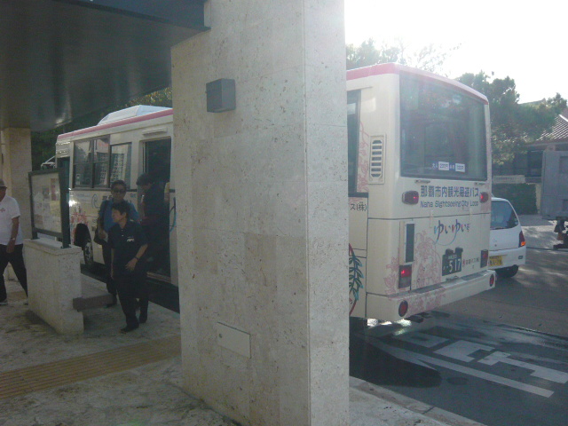 ゆいゆい号は那覇市内観光周遊バスです。1日乗り放題パスポートが660円、1回運賃どこでも230円、ゆいレールとバス1日乗り放題1000円です。約20分間隔で始発?那覇バスターミナル4番乗り場から識名園、玉陵、首里城公園、沖縄県立博物館・美術館、国際通りなど15バス停に停まります。名所前にバス停があるので便利ですが細い道や混雑するルートを通るので時間がかかります。
