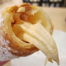 バゲット、クロワッサンもおいしいのですが、自家製のふんわり軽いカスタードクリームをその場で入れてくれるサクサクのパイがおいしいんです。