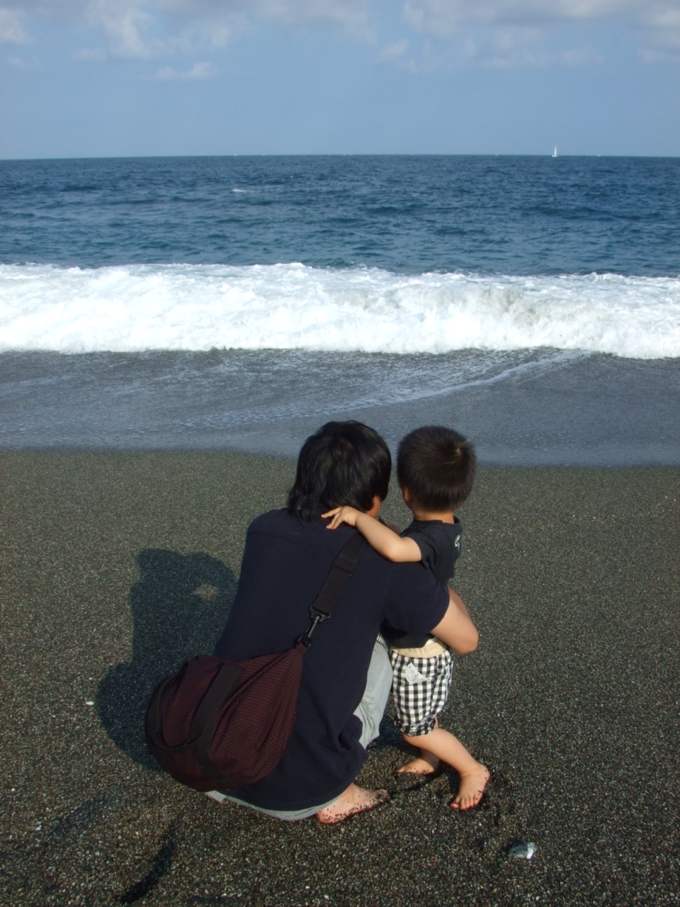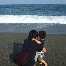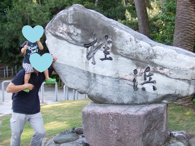 桂浜の海は、遊泳禁止だそうで、結構波が高いです。こんなにも押し寄せてくる波を見たことがなかった3歳の子供は、遠くから見ている時は喜んでいましたが、近くに行くと怖がっていました。