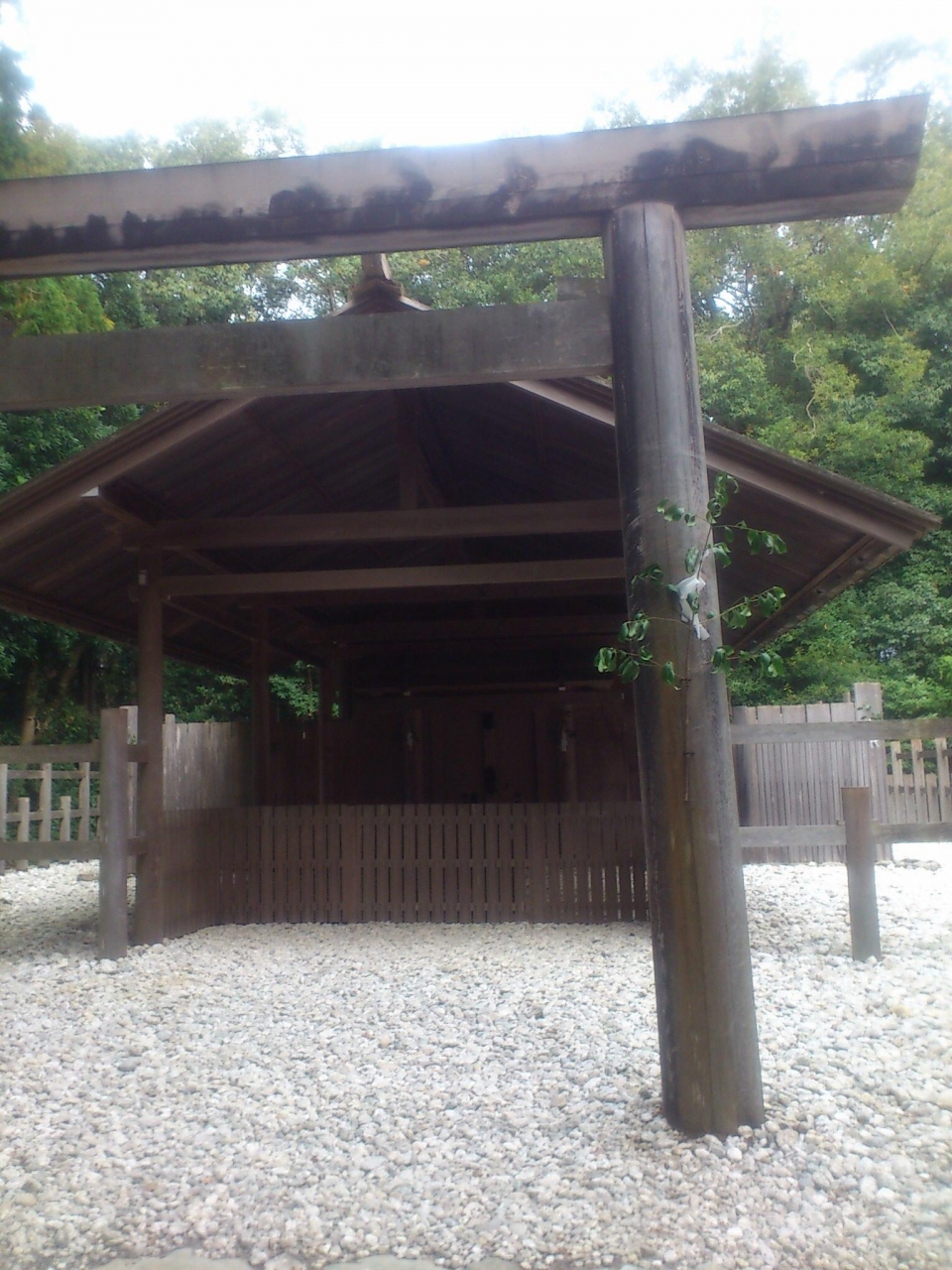 五十鈴川駅からバスで2つ目の停留所の微古館前で降りると参道の入り口があります。参道は森の中を下っていく感じで、その雰囲気がとても厳粛な感じがして良いです。参道が最後、右に曲がって階段があります。階段を上ると本殿が現れます。内宮の観光客で混雑と比べると、ほとんど参拝者もいない雰囲気がとても良かったです。帰りは社務所前を左に曲がると、微古館の方へ行くことができます。