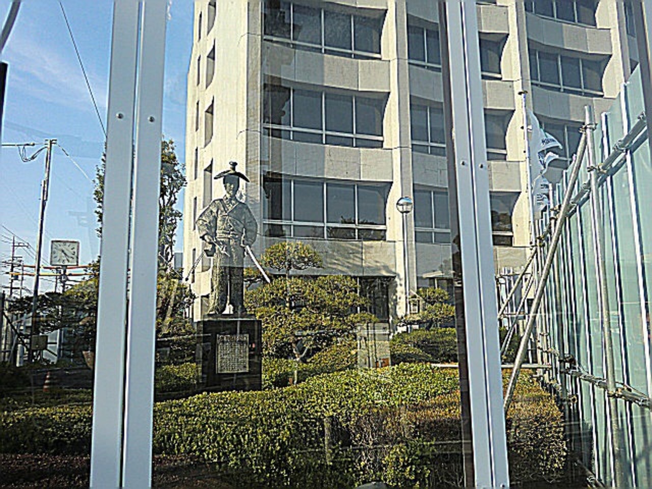 この像が建てられている場所は、元々川越城の大手門があった場所で、像のすぐ脇にはそのことを示す碑も建てられていますが、現在修復中でガラス越しにしか見れません…