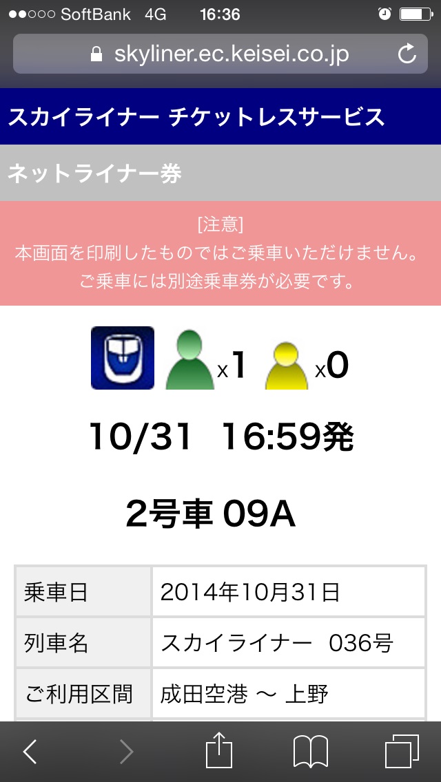 着陸後にすぐ機内からライナー券の予約ができるようになった。