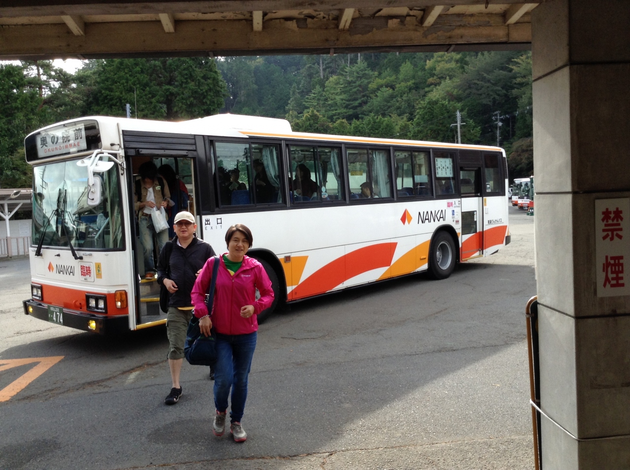 高野山のバスと鉄道がセットになった券で乗りました。ケーブルカーの駅からバスで高野山に向かいます。時刻表を見る限り本数が1時間に1~2本程度でしたが、連休に行ったときは、臨時バスがどんどん出ていて、時刻表は関係なく待っていれば乗れるという状況でしたので、助かりました。