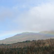 斜里方面から羅臼へ抜けるため走りました。あいにく天気が悪く、峠からの景色や野生動物といったものは見えませんでしたが、一瞬止んだ雨の中にとても大きな虹を見ることができ、それだけでも見ごたえが十分あったなと思いました。