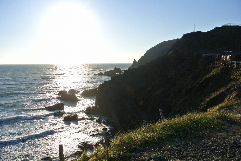 眼前には広大な太平洋、背後には山脈がそびえ、まさに「岬」といったイメージそのままです。ちょうど夕暮れ時に訪れたのですが、沈み行く夕日と海による反射が絶妙なまでにマッチしていて、とても感動的な風景となりました。