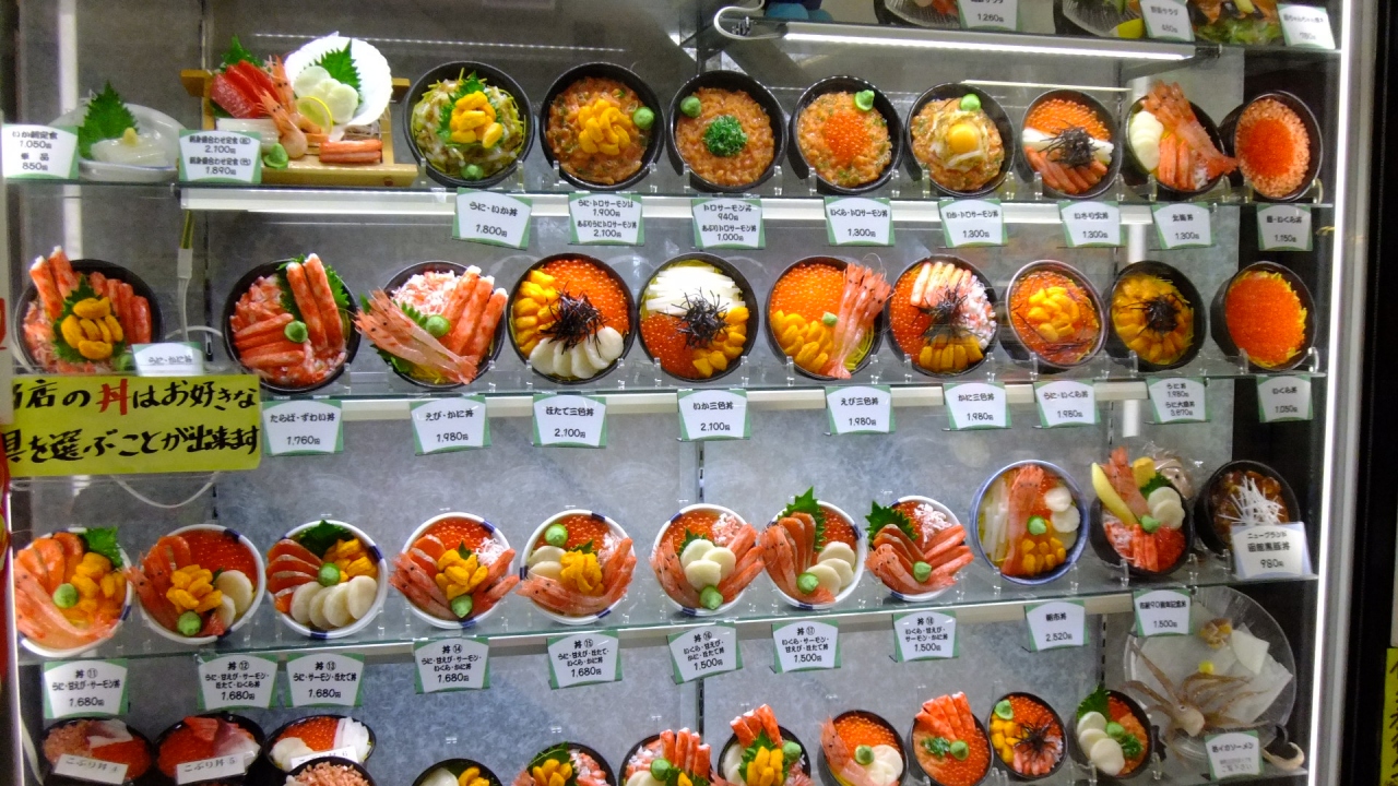 函館といったら、朝市というイメージがあったので行ってみた。カニやイカなどをはじめとした海鮮丼系は驚くほどたくさんある。買ったらその店で送る手配もしてくれる。試食なども配っていた。丼ものや刺身などの食事系の店もたくさんある。