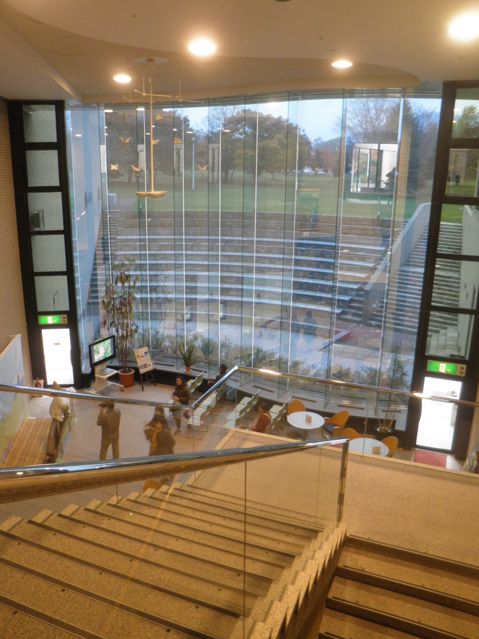 札幌の中嶋公園にある北海道立文学館にムーミンの世界展を見に行きました。 ムーミン谷の世界のジオラマやムーミンとスナフキンがならんだ大きな人形などがありとても楽しいものでした。 建物に外の光がいっぱい入る明るい構造の建物です。