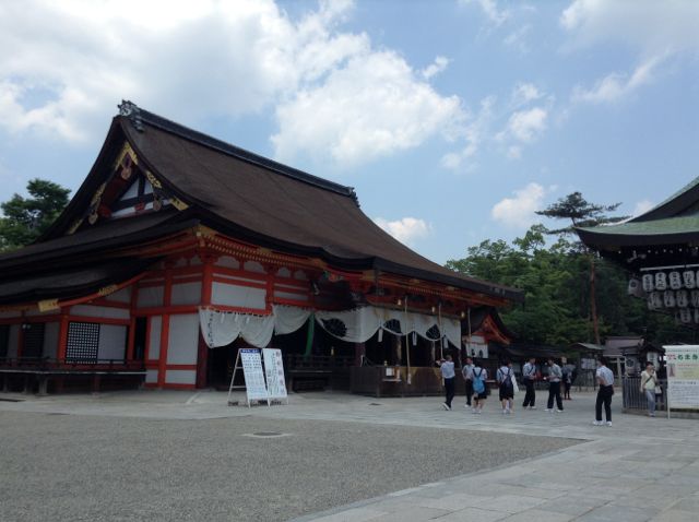 京都に来たら必ずうかがうところ。個人的に京都といえば、こちらの八坂神社です。河原町からこちらへ向かうまでの道のりは、徒歩でもバスでも自転車でも、テンションが上がります。四条通に面した門は正門ではないそうですが、たいていはこちらから。境内に入り、拝殿前に立つと背筋が伸びます。