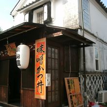 お店の入り口に大きな看板が架かっていて名物らしい、“味噌カツ丼”を頂きました。味噌カツ丼に味噌汁と香の物がついて800円でした。味噌カツはやわらかくて、少し甘口の八丁味噌も濃すぎず、ご飯もべたベタしていなくてとても美味しかったです。値段も観光地にしては安いと思いました。