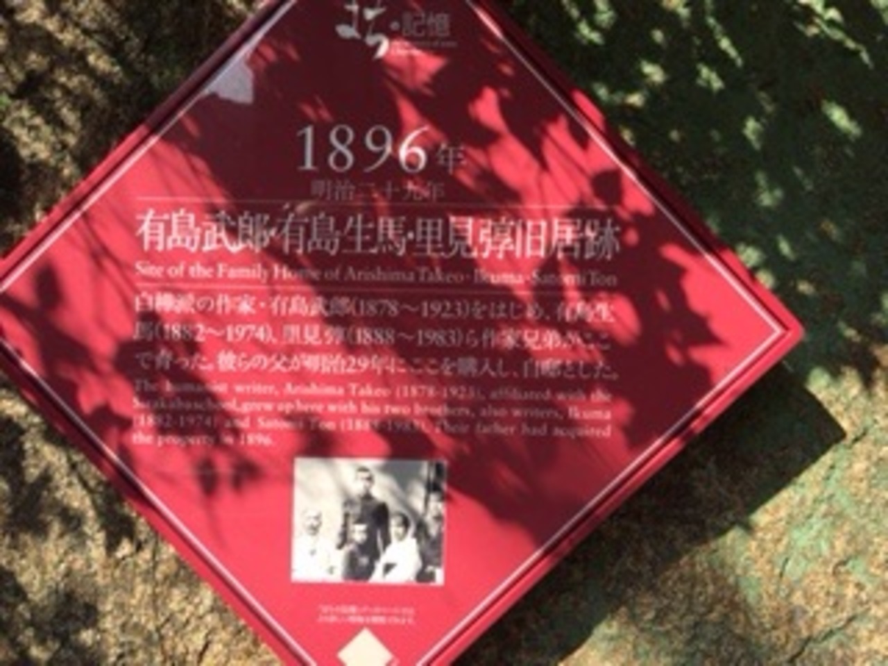 JR四ツ谷駅から日本テレビ通りに向かって歩き、5分位のマンションの石垣に説明書がある。この辺りは、番町文人通りと言って明治の文豪が数多く住んでいたそうだ。有島武郎3兄弟も同様だ。ほとんどは高級マンションに建て替わっている。