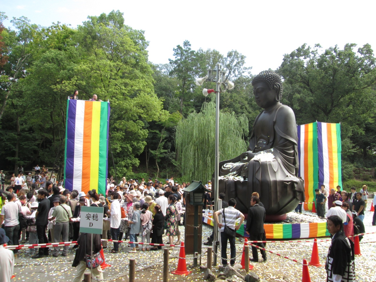 平成大仏の入仏式が盛大に開催されていました。(100年に1度なのかな?)白い布で隠された大きな大仏さん。布が下ろされ、ゆっくりと本殿に向かって進んでいく様子は、迫力ありますね。途中、櫓から紙ふぶきが撒かれ、キラキラ輝きながら舞っていました。いいお顔をしていましたよ・・・平成大仏さん。