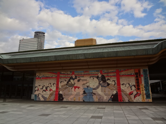 一年前の同じ時期に、国技館を訪ねました。場所は開かれていなかったのですが、全国民謡大会だったか、大きなイベントが開かれていて、大変混雑していました。今年は、何のイベントも開かれていなくて、正門は閉まっていましたが、通用口から入らせてもらいました。相撲博物館は、見学可能です。正面の緑地にある、さざれ石などをゆっくり見ることもできました。