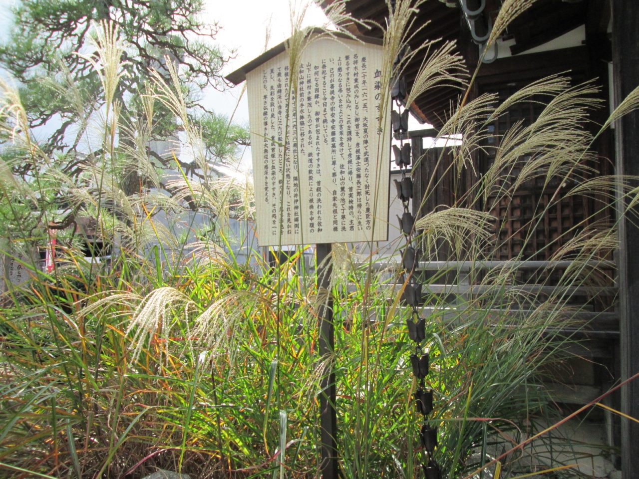 「夢京橋キャッスルロード」に位置する「宗安寺」です。旧佐和山城から移築したという「赤門」も有名でしょうが、境内にも見るべきものが多いお寺です。まずは墓地にある木村重成首塚。木村重成公といえば、長浜の「豊国神社」では豊臣秀吉公・加藤清正公と共に御祭神とされているほどの武将で、大坂冬の陣では豊臣軍の代表として徳川家康公と停戦交渉したほどの大物です。夏の陣でも奮戦し、藤堂高虎討ち取られた首が、この「宗安寺」に葬られています。また重成公の首をくるんでいた薄が「地蔵堂」横に根付き、”血染めのススキ”と呼ばれています。そして本堂や書院内にも、淀殿や石田三成公の念持仏など凄いコレクションがありました。是非多くの人に見てほしいのですが、仏様の写真撮影は御遠慮下さいね。