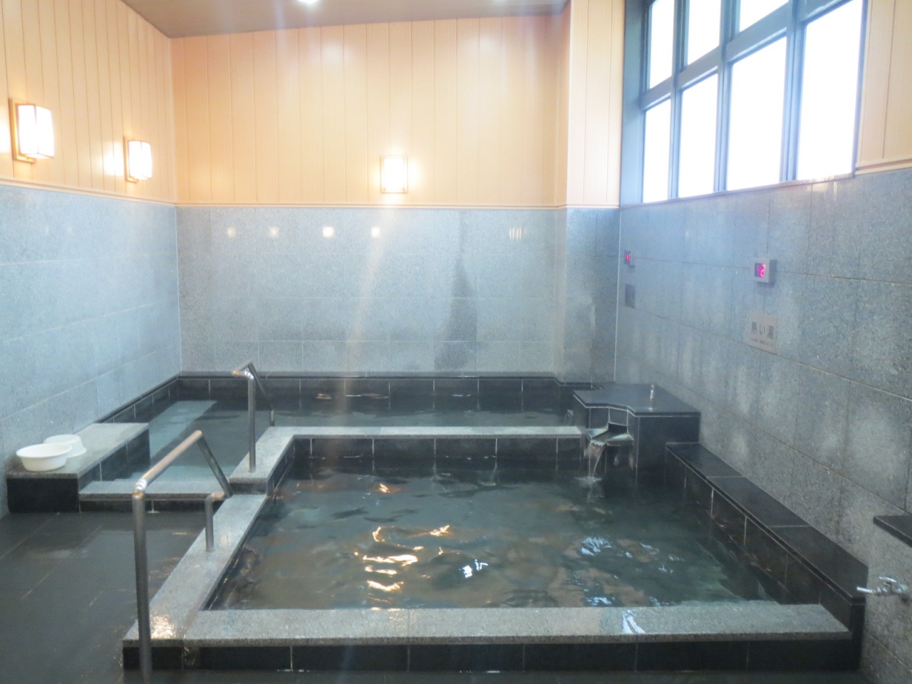 奥側のL字型の浴槽が「温い(ぬるい)湯」で41度。こちらは加水あり。