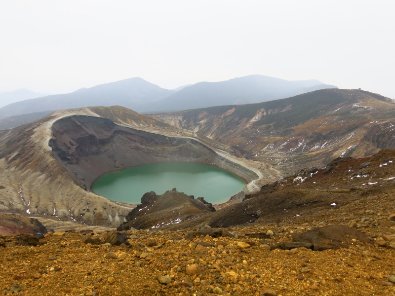 火口湖の「御釜」は観光地としても有名です。