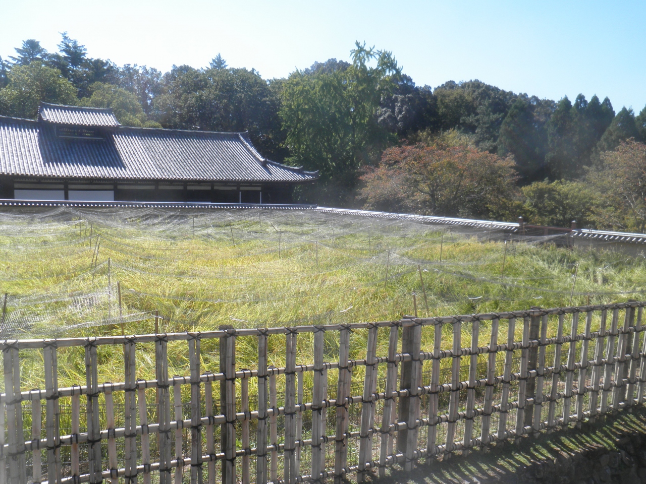 東大寺の境内は、石畳の坂があったり白壁が続いていたり、瓦屋根の小さい建物があったり散策が楽しいところです。 田んぼらしきところでは、稲の穂が黄色く色づいていて秋らしい風情でした。 10月でまだ紅葉が始まったばかりのせいか、あまり人は多くはありませんでした。