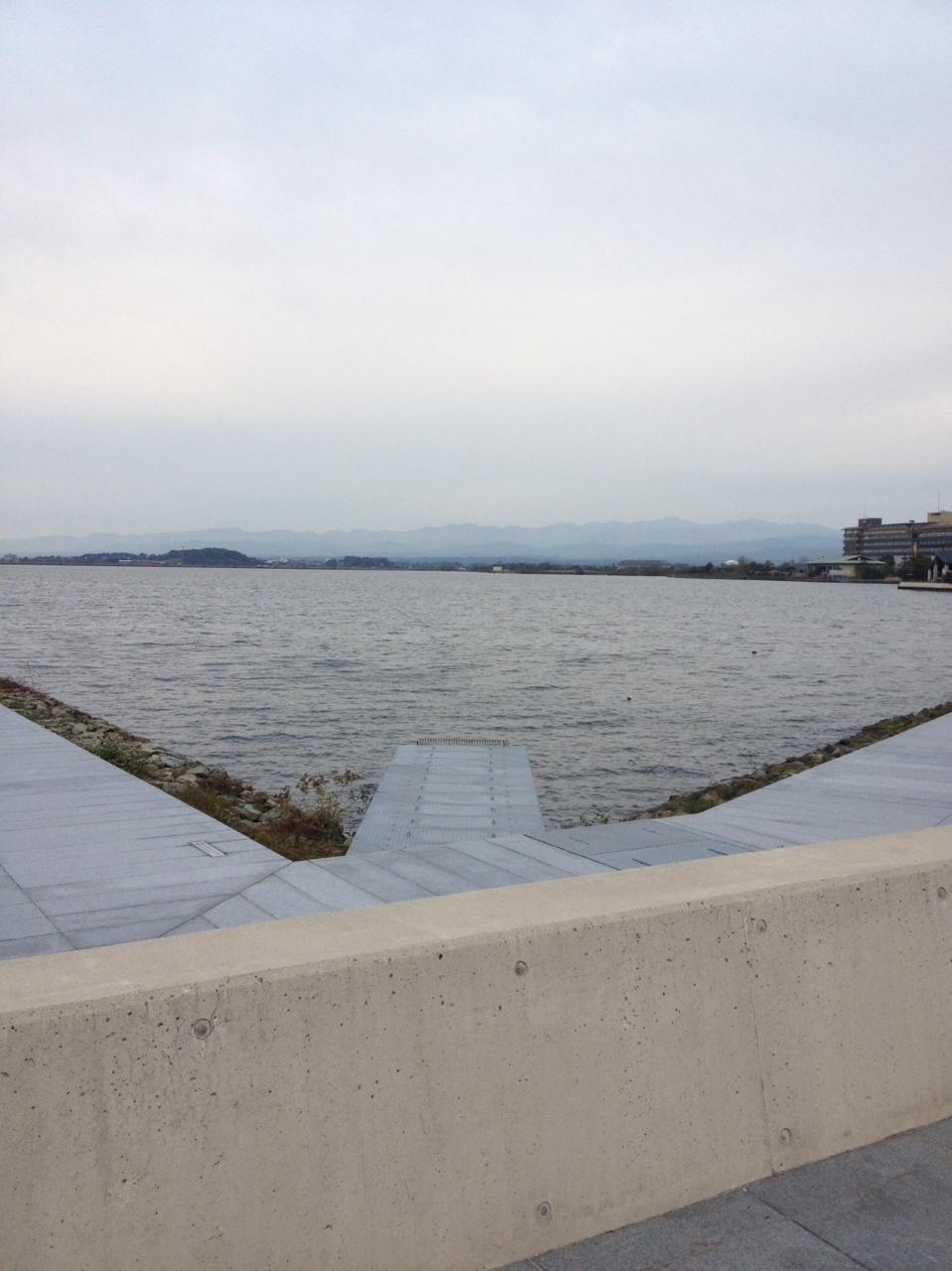 湯上りに建物そとで柴山潟をのんびり見ることができます。