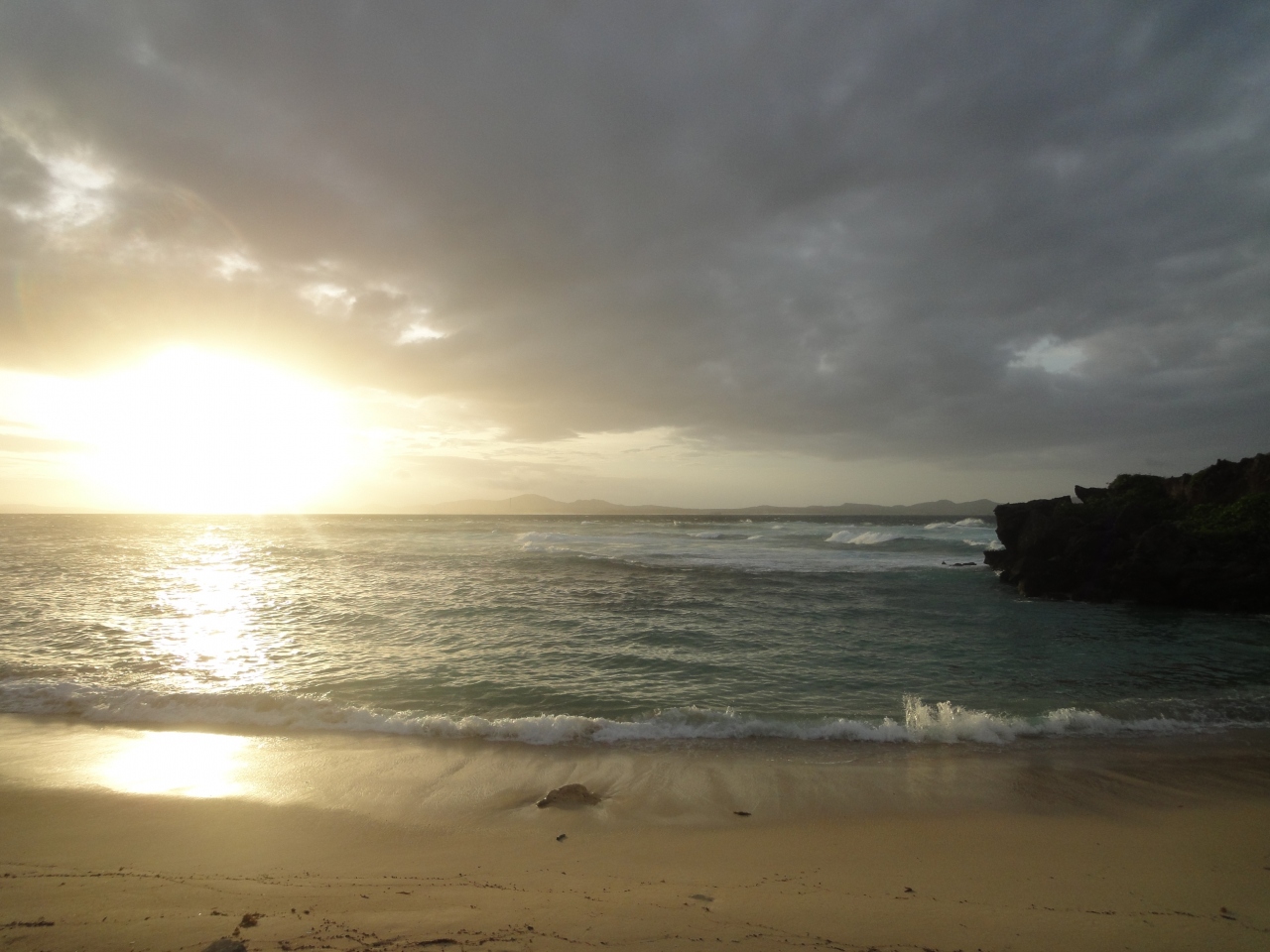 台風が接近中だったため、遊泳禁止だったものの、海は青く、美しい夕日が見えました。