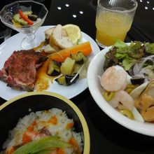 夕食ブッフェはお肉のメニューが多く、特に豚のしゃぶしゃぶがおいしかったです。