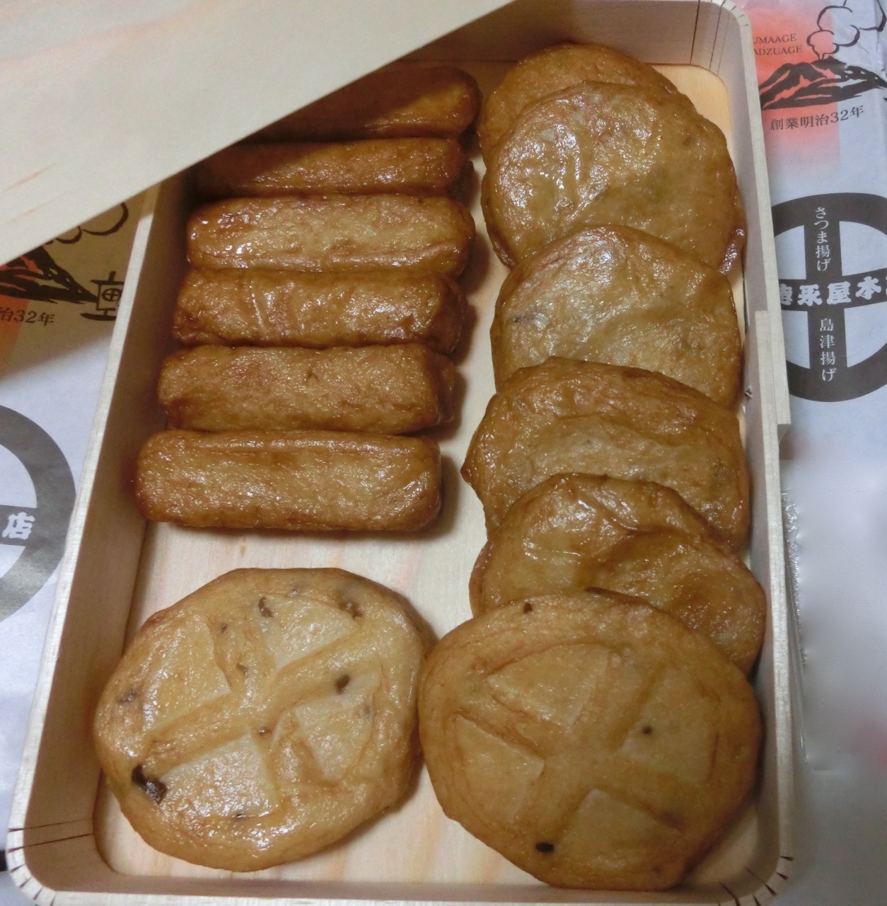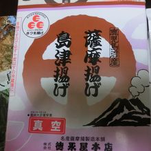 山形屋のブースで、徳永屋本店の薩摩揚げを買いました。創業当時からの薩摩揚げ本来の味を追求しているようなオーソドックスな逸品で、丸に十の字の島津揚げも入った折り詰めは、おみやげにとても好評でした。鹿児島市内に出ない場合にも便利だと思います。