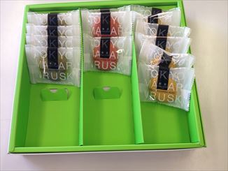 リーズナブルな価格にてお土産として喜ばれるラスクを買う事ができます。ぜひ。