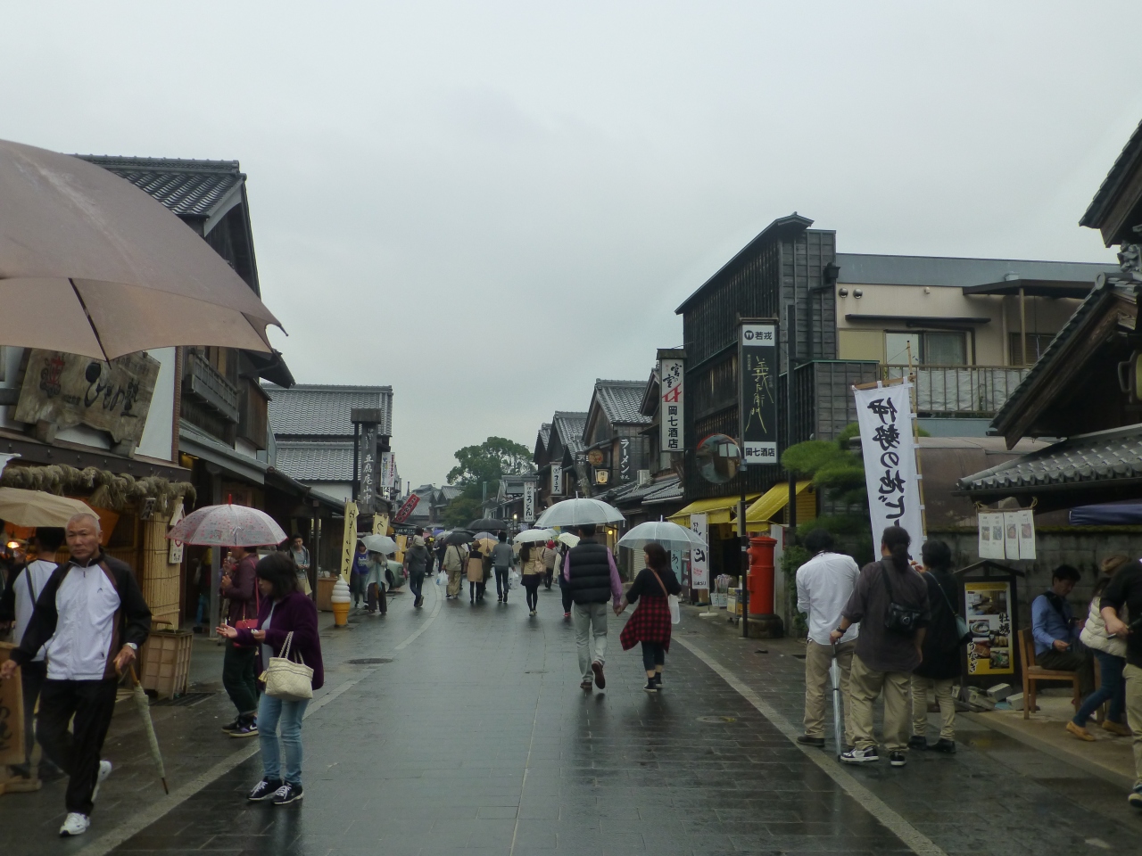 今も内宮参拝の後に 楽しむ人達で いつもいっぱいですが、私が行ったのは 平日の雨の午後で 比較的すいていました。夕方は6時ぐらいで 店が閉まってしまうので 夕飯をここで食べようとするのは 無理ですね。
