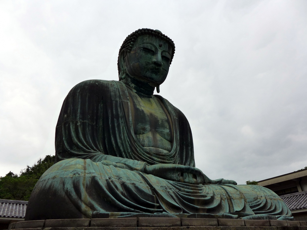 高徳院の境内の中央に鎮座した鎌倉大仏は、優しくも凛々しいお姿で、その存在感はさすがです。