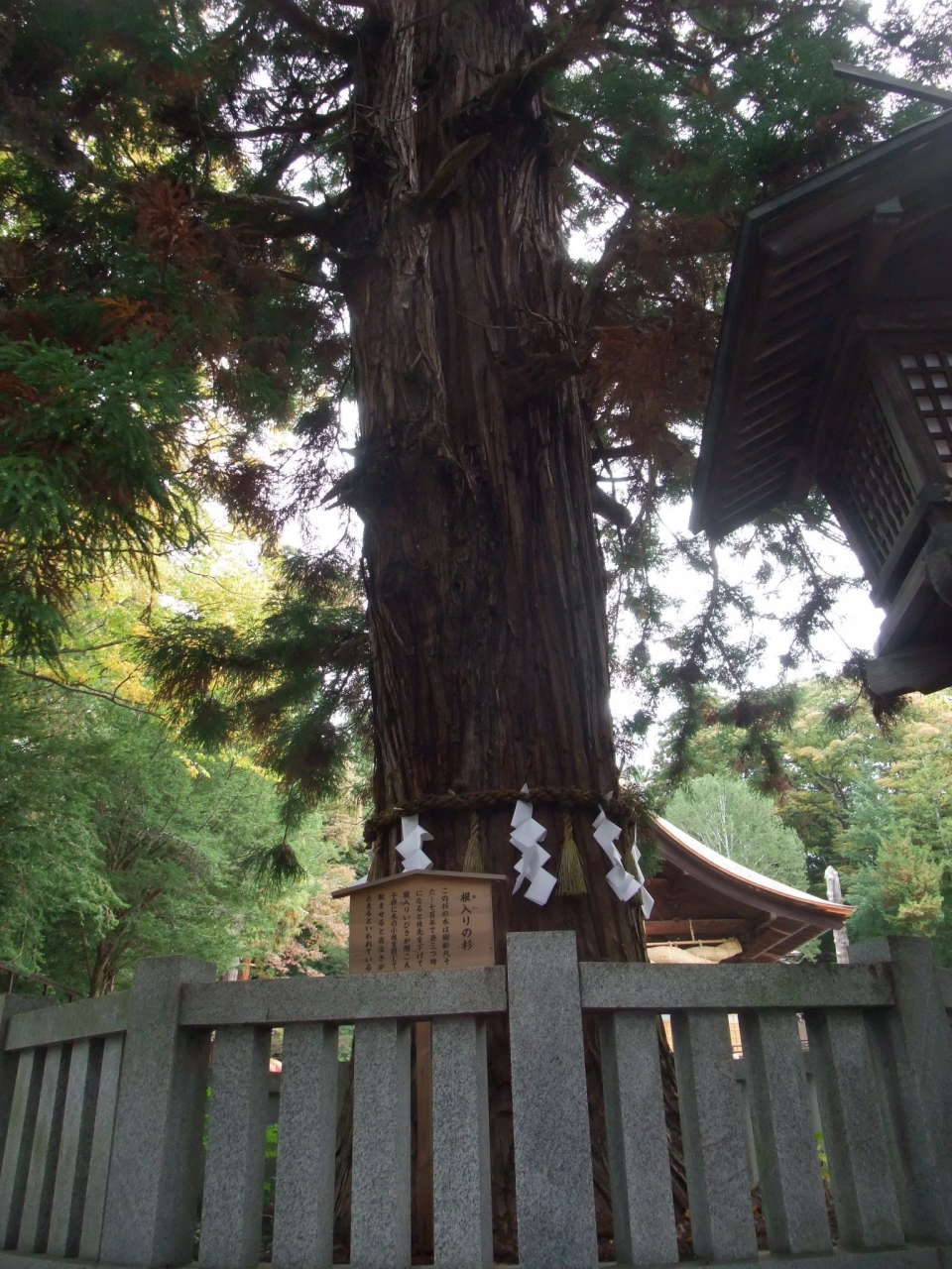諏訪大社下宮秋宮の樹齢6~700年の「根入りの杉」は、丑三つ時になると枝先を垂れて寝入り、いびきが聞こえてくるといいます。木の小枝を煎じて飲ますと、子供の夜泣きが止まるそうです。